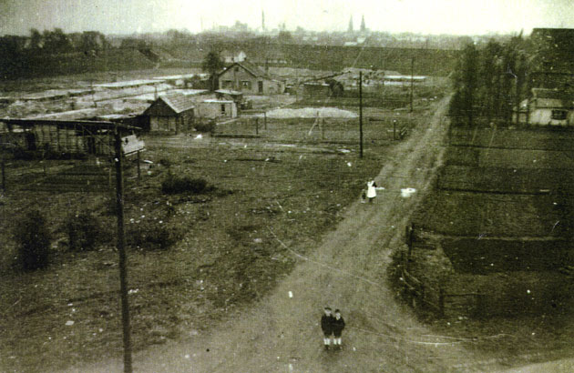 Von Josef Praß stammt dieses Bild (vielen Dank!) vom Baubeginn des Sonnenscheins in Bickern im Jahr 1950. Fotografiert wurde es aus dem Haus Hüller Straße 8. Rechts ist der Mooskampweg zu sehen, vorn die Brüder Josef und Manfred Praß.