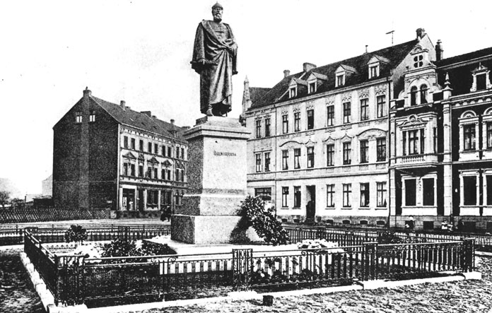 Das Kaiser-Friedrich-Denkmal stand mitten auf dem Steinplatz, der damals logischerweise auch Kaiser-Friedrich-Platz hieß.