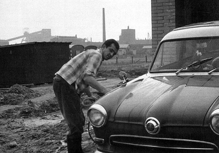 Das Drumherum war Ende der 1950er, Anfang der 1960er Jahre in Wanne-Eickel noch ziemlich staubig und düster. Aber das Auto soll strahlen: Vor allem, wenn es sich um einen schönen Ford-Taunus mit Weltkugel über dem Kühlergrill handelt.