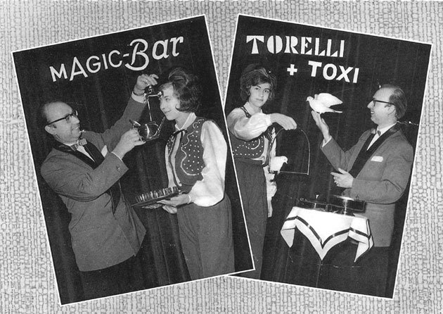 Friedrich Lengenfeld kann helfen: âDer Wanne-Eickeler Zauberer âTorelliâ hieĂ bĂźrgerlich âJankowskiâ und trat in den 1960er Jahren mit seiner Tochter (genannt âToxiâ) als Assistentin auf. Die âMagic Barâ war die auf dem linken Foto dokumentierte Hauptattraktion der beiden.â