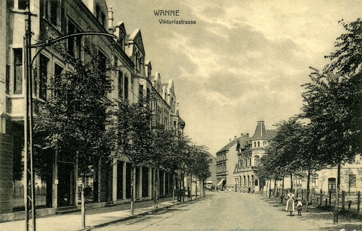 1907 hieß die Hauptstraße in Wanne-Süd noch Viktoriastraße und wirkte ziemlich kuschelig. Heute ist das ganze ziemlich vierspurig, ziemlich asphaltiert und deutlich weniger kuschelig.