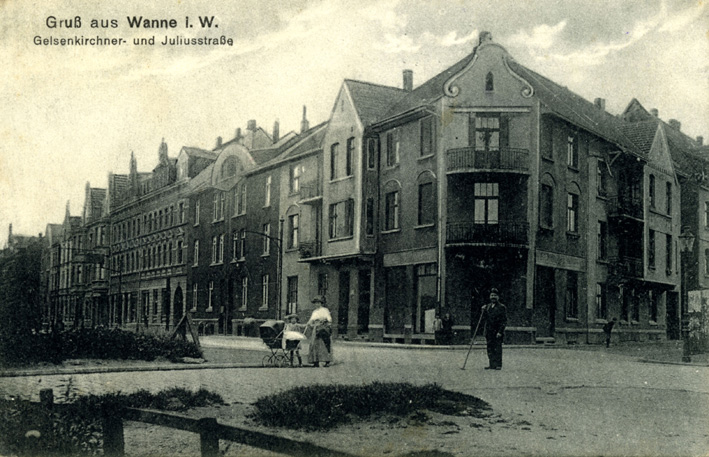 1918 hieß die heutige Gelsenkircher Straße noch Gelsenkirchener Straße - obwohl auf dieser Postkarte als dritte Variante Gelsenkirchner