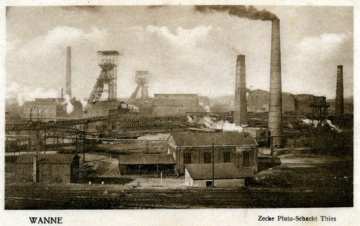 Die Zeche Pluto-Thies spielte dabei eine nicht unbedeutende Rolle. Schließlich verdankt Wanne-Eickel seinen ersten Haltepunkt dieser Schachtanlage. Aus dem Zechen- und Güterbahnhof Pluto-Thies entwickelte sich bald auch ein Haltepunkt für den Personenverkehr. Der erste Bahnhof Wanne nahm Gestalt an.