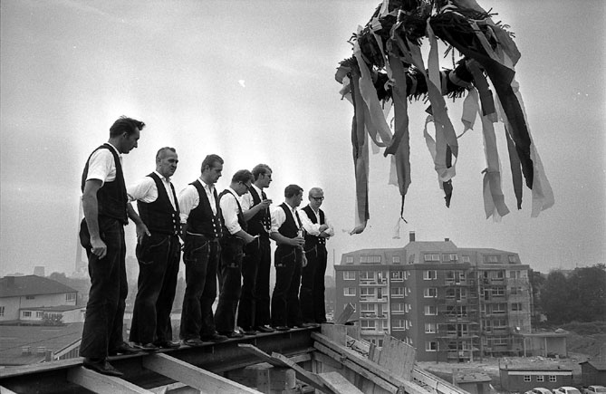 Auf welchem Dach mag dieses Richtfest stattgefunden haben? 1969.