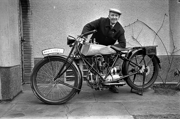 Heinz-Christian Weigel schreibt dazu: “Dieses Motorrad habe ich in den Jahren 1951 bis ca. 1957 täglich von morgens 7.30 Uhr bis mittags unter dem Fahrradabstelldach der Gustav-Adolf-Schule bewundert und dort auch oft im Sattel gesessen. Nach dem Unterricht fuhr der Volksschullehrer Strathmann (vielleicht auch ohn “h”) nach Hause zur Gabelsberger Straße, Ecke Harkortstraße, wo er es auf dem Hof in der heute noch dort stehenden Holzhalle abstellte.”
