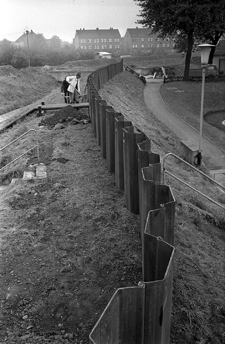 Hier wird Anfang der 1970er offenbar ein Bach eingedämmt. Aber welcher? Und wo?
