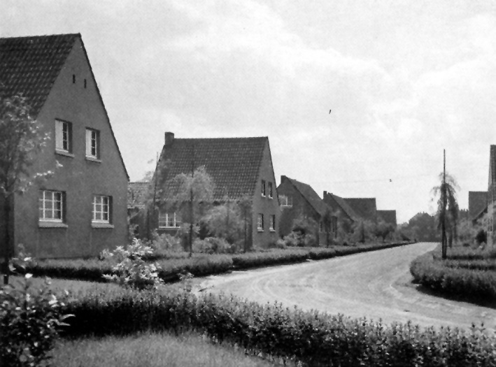 Gemeindesiedlung an der Dorstener Straße. Das vordere Haus (Nr. 65) gibt es nicht mehr, das hintere Haus (ehem. Nr. 61/63) hat heute die Hausnummern