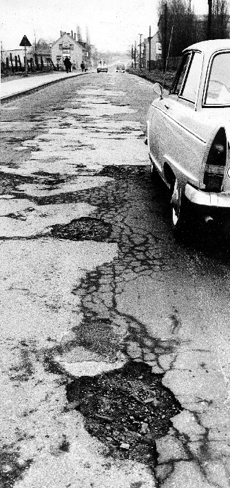 Anfang der 1970er Jahre war in der WAZ offenbar der schlechte Zustand der Straßen ein Thema. Fotograf Walther Müller dokumentierte.