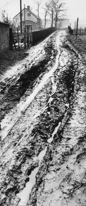 Wilfried Brodowski ergänzt: “Meesmannstraße aus Richtung Riemke, vor dem Ausbau. Rechts befindet sich heute ein Getränkegroßhandel.”