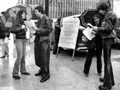 Die Bilder zeigen die Freeway Riders bei einer Unterschriftenaktion vor der Christuskirche.