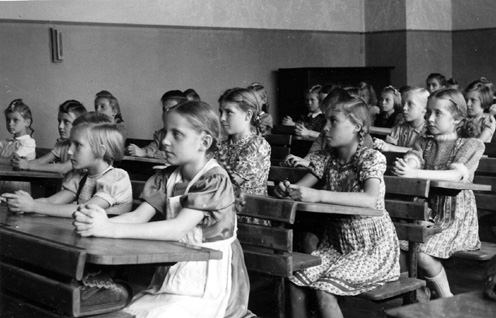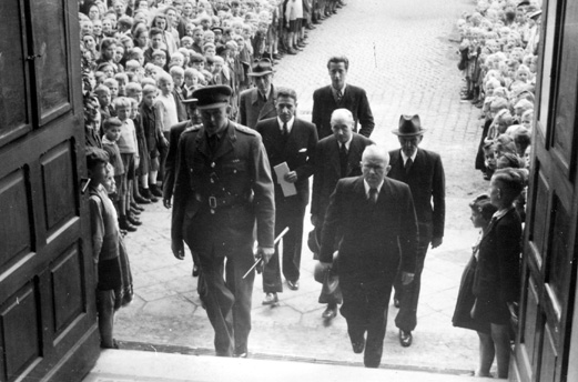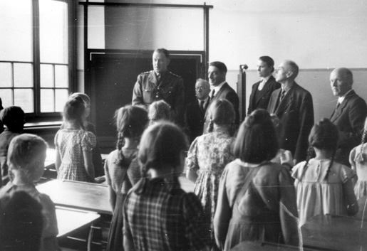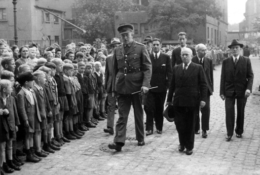 Im Beisein des britischen Stadtkommandeurs wurde der Schulbetrieb nach einer feierlichen Zeremonie wieder aufgenommen.