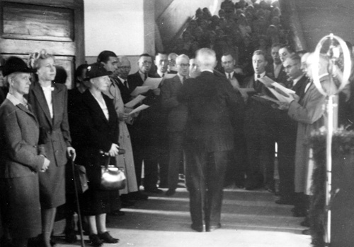 Kurz nach dem Zweiten Weltkrieg machten etwa 40 junge Frauen und Männer eine Blitzausbildung zum Volksschullehrer. Das Foto zeigt die Teilnehmer der Lehrerausbildung 1946/47.