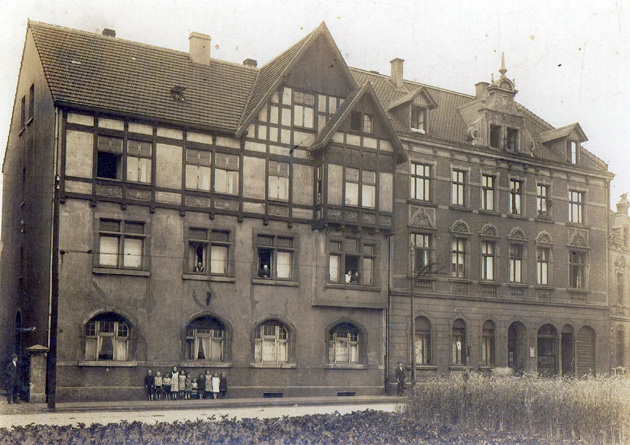 Fabians Urgroßvater Wilhelm Mathemeier (Foto von 1920) wohnte zwar in Wanne-Eickel, arbeitete aber in gehobener Stellung auf der Zeche Viktoria in Marl-Hüls. Ein ganz früher Pendler also, der auch mal als Polizist in Wanne-Eickel tätig war. Wilhelm Mathemeier kaufte die beiden Häuser Eickeler Straße 58 und 60, die auf dem unteren Bild zu sehen sind. Das Foto stammt aus dem Jahr 1922.