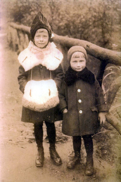 Anspruchsvolle Kindermode der Zwanziger Jahre zeigen die beiden Kinder aus dieser Ehe, Charlotte (* 1916) und Hans-Georg (* 1919) um 1924. Der Muff links ist beachtenswert!