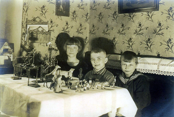 Noch einmal die beiden Geschwister mit einem Nachbarskind und einigen schönen Spielsachen aus dem Jahr 1925.