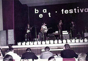 natürlich nahmen die Roadrunners auch an den damals populären Beat-Wettbewerben teil. Dieser fand im Volkshaus Röhlinghausen statt. Im Vordergrund die Jury, auf der Bühne Reinhard Ratajczak, Werner Meckelburg, Jürgen Fritz und Reinhard Michalak. Den Schlagzeuger Werner Wölke (rechts außen) hat der Fotograf nicht mehr aufs Bild bekommen...