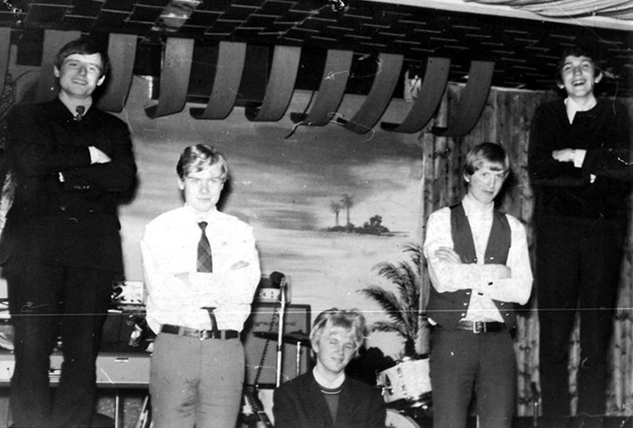 Ricky & The Countains in “Bestbesetzung” (O-Ton Werner Meckelburg): Rudi Nolte (Bass), Werner Meckelburg (Rhythmusgitarre), Udo Heine (Gesang und Keyboard), Hannes Müller (Sologitarre) und Trommler Werner Wölke (v.l.n.r.).