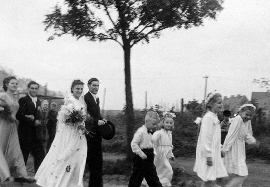Erstkommunion 1941 vor dem Pfarrhaus St. Michael.