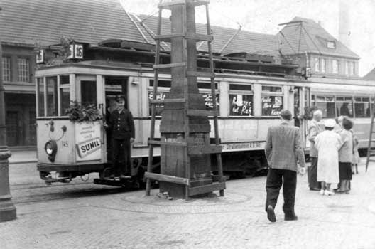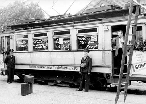 ... ziemlich gewagte Fensteraufschriften im Deutschland der Nachkriegsjahre. Auch aus heutiger Sicht noch geschmacklos. Die Bahn durfte tatsÀchlich öffentlich so fahren.