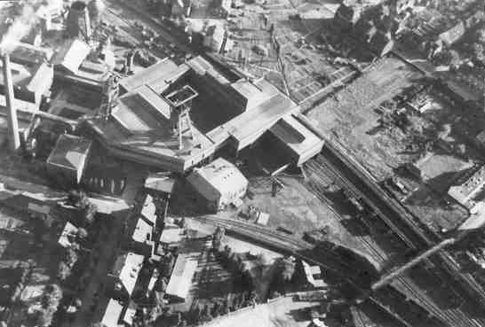 Eine ausgesprochen seltene Luftaufnahme der Zeche Königsgrube. In der Bildmitte: Schacht Gustav, zu dem die Königsgruber Straße führt. Vorne rechts im Bild ist die Asthmabrücke zu sehen.