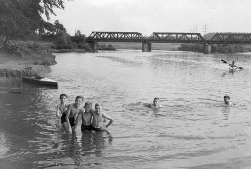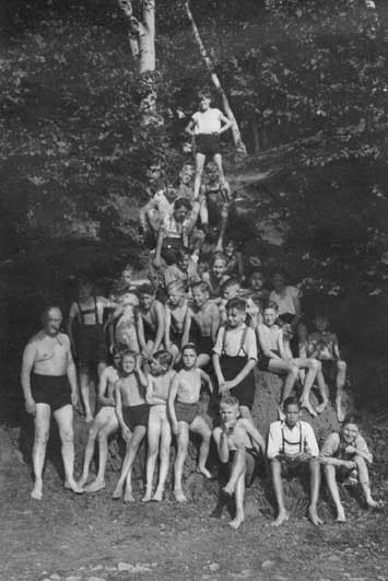 Links und unten: Die Quarta IVd des Jungengymnasiums (heute. Gymnasium Eickel) mit Studienrat Zimmermann am Hengsteysee.
