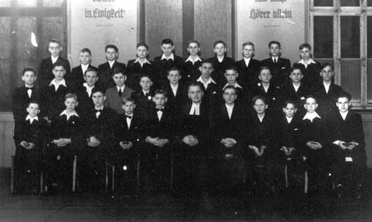 Oben: Die Konfirmanden des Jahrgangs 1950 der Lutherkirche mit Pfarrer Alexander Brune.