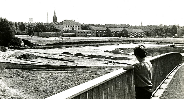 Bau des Sportplatzes zwischen Emscherstraße und Hammmerschmidtstraße Ende der 1960er, Anfang der 1970er Jahre..