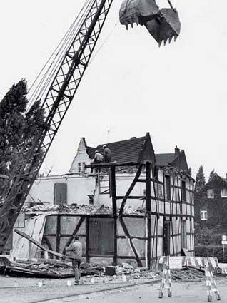 Auch die alte Cranger Schule drohte umzukippen. Der Bagger machte dem Schiefstand ein Ende.