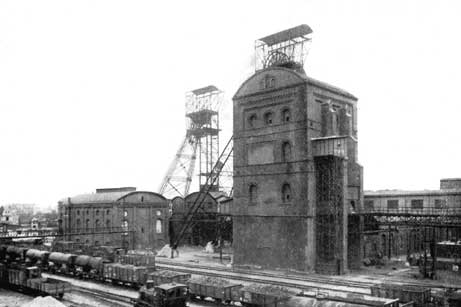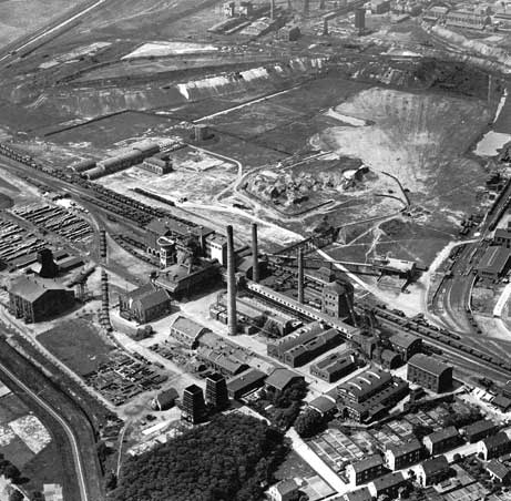 Zech Pluto Schacht Wilhelm - eine frühe Luftaufnahme, bevor das Schupp’sche Doppelgerüst errichtet wurde. Unten rechts die Thiesstraße.
