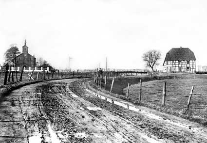 Oben: Cranger Kirche und alte Cranger Schule - der Weg führt über den heutigen Cranger Kirmesplatz.