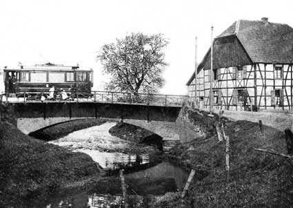 Unten: Mit der Elektrischen nach Crange. Die Brücke führte über die Emscher, bevor sie in ein Betonbett verbannt und nach Norden verlegt wurde.