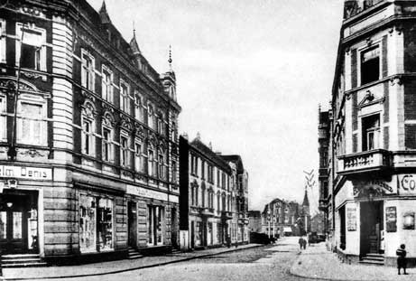 Blick von der Kranzplatte (Kreuzung Edmund-Weber-Straße, Plutostraße, Burgstraße, Königsgruber Straße) ind die Edmund-Weber-Straße.