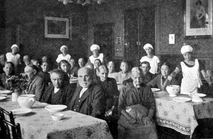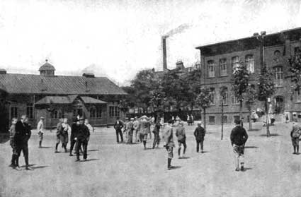 Zweimal Berufsschule: oben der Schulhof, unten eine Altenspeisung