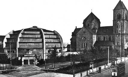 Ein apartes Ensemble: Josefskirche und Stadthalle