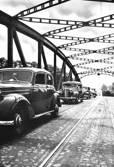 Die ersten Autos rollen 1951 wieder über den Kanal (natürlich zuerst die dicken). Warum aber der Belag auf der funkelnagelneuen
