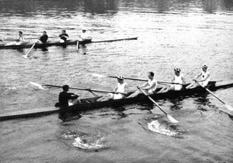 Nicht nur für dicke Pötte: Der Kanal war auch bei Wassersportlern sehr beliebt. Wanne-Eickeler Ruderer brachten es sogar ganz weit nach oben!