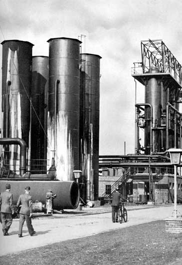 Vom Stickstoffwerk Hibernia ist außer einer (wahrscheinlich) großen Menge Altlasten nicht mehr viel übrig geblieben. Einst der größte Arbeitgeber in Holsterhausen (unten: ein Schichtwechsel) - heute eine gigantische Brache mit ungewisser Zukunft.
