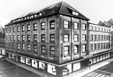 Nachdem Karstadt das Haus übernahm, setzte man erst mal eins drauf, nämlich zwei Geschosse. Später wurden die Fenster dichtgemacht und die Fassade verblendet. Dieser scheußliche Unfug ist mittlerweile wieder weg. Karstadt aber auch. Geblieben ist ein trostloser Haufen alter Steine, der wirklich was besseres verdient hätte..