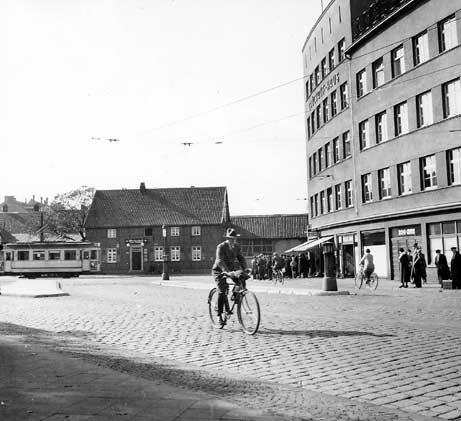 Das obere Foto zeigt den Glückaufplatz kurz vor oder während des Zweiten Weltkrieges. Rechts im Bild die schöne Bauhaus-Fassade des Bresser-Gebäudes.