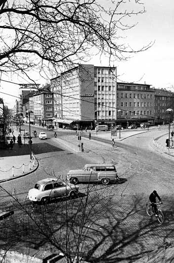 Unten der GlĂĽckaufplatz Ende der 50er Jahre.
