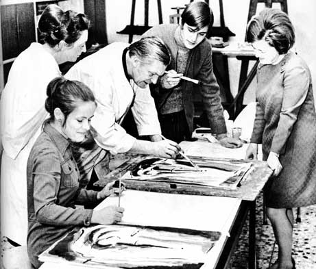 Schöne Künste in Wanne-Eickel: Bilderausstellung im VHS-Haus, unten ein Malkurs mit dem Gelsenkirchener Kunstmaler Janitzki.