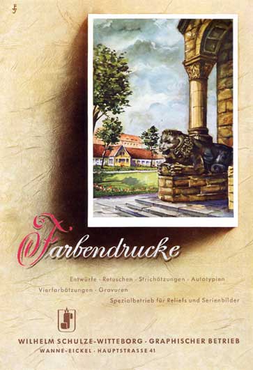 Am (kein Scherz) 1. April 1951 feierte die Stadt Wanne-Eickel ihr 25jÀhriges Bestehen. Wie es sich gehörte, mit einer opulenten Festschrift. Und alles, was damals Rang und Namen im Wirtschaftsleben unserer Stadt hatte, war mit einer Anzeige dabei. Als kleines Special sind hier einige der bebilderten GeschÀftsanzeigen. Die schönsten von ihnen stammen ohne Zweifel von dem Wanne-Eickeler Grafiker Fritz Illburger, dem ich hiermit höchste Verehrung aussprechen möchte.